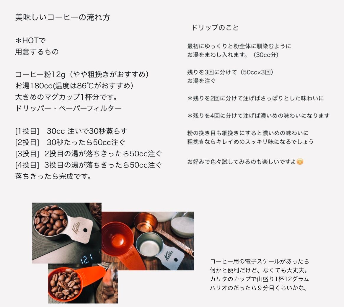 コーヒーは豆のままの状態でお届けします。